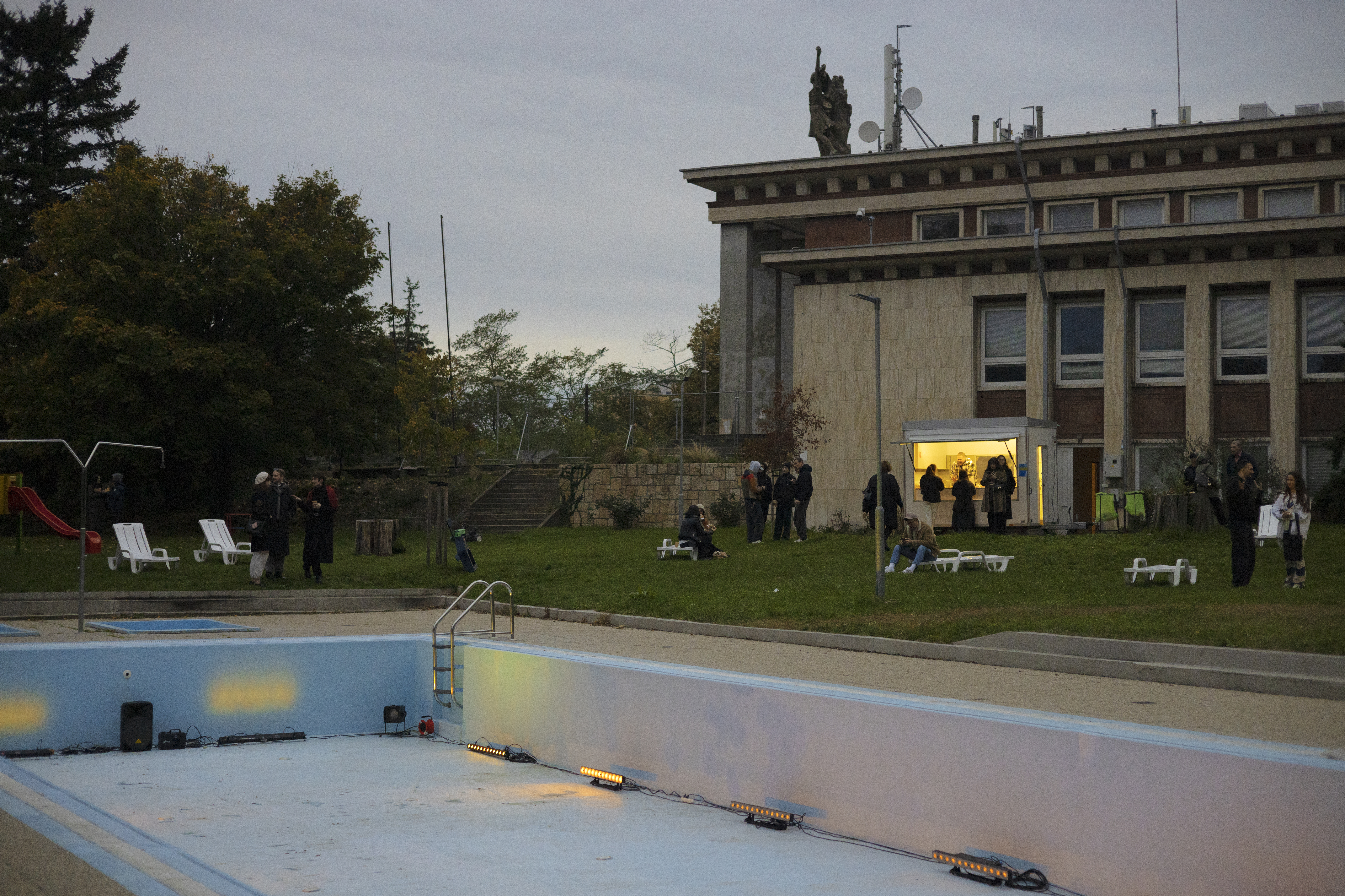 Around the pools, imaginary communities are formed. It is common that if you regularly visit a swimming pool close to where you live, you meet the same people, just like in cafés, fitness centres or even public transport. If the swimming pool area in its transformed form becomes emptied, its function of building an imaginary community can be restored precisely by embracing it as our own at every stage of its cycle. In its emptied form, we have the opportunity to find new uses for it, new ways of spending time together and thus unconventional ways of establishing and strengthening social relations.