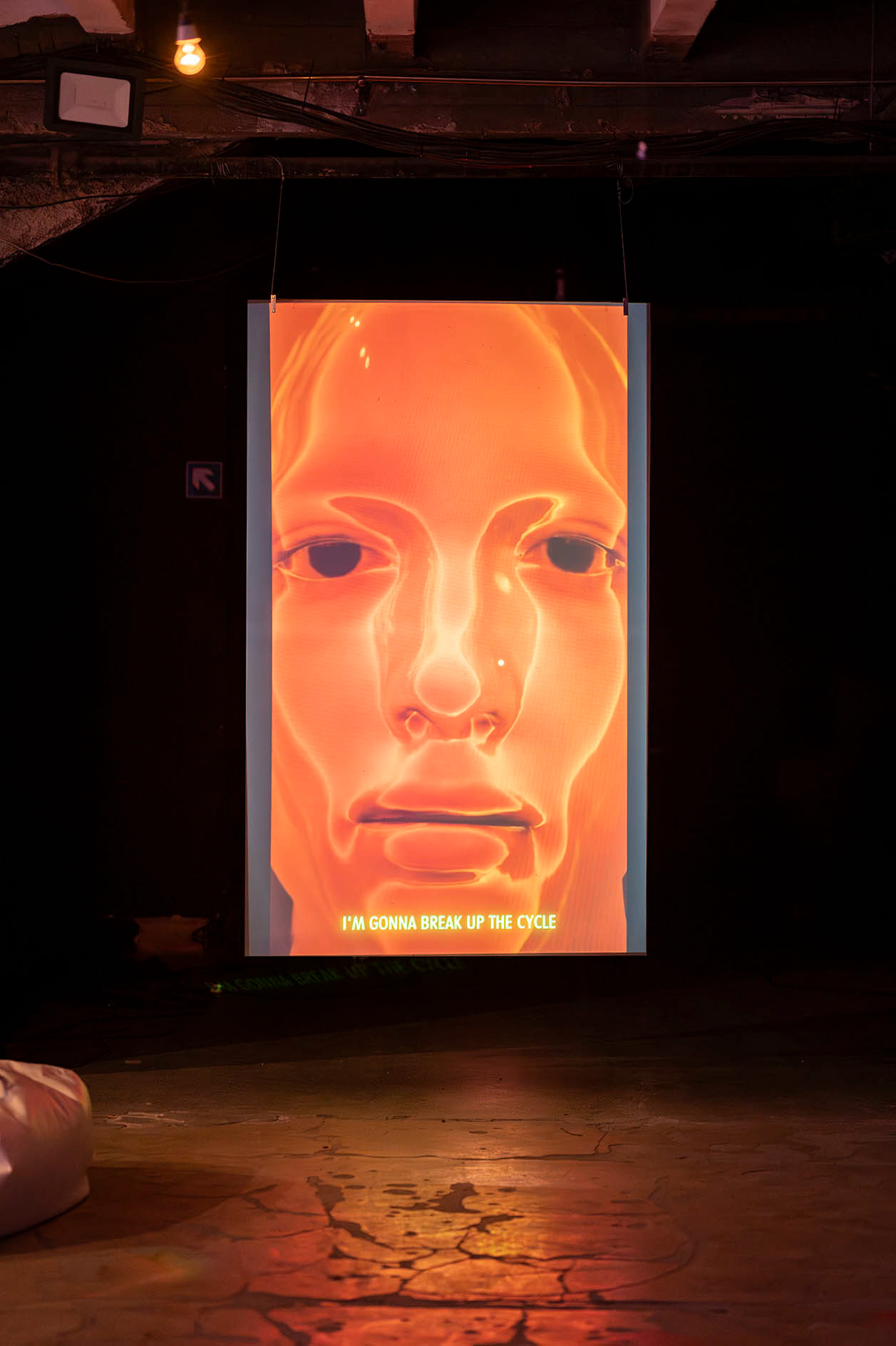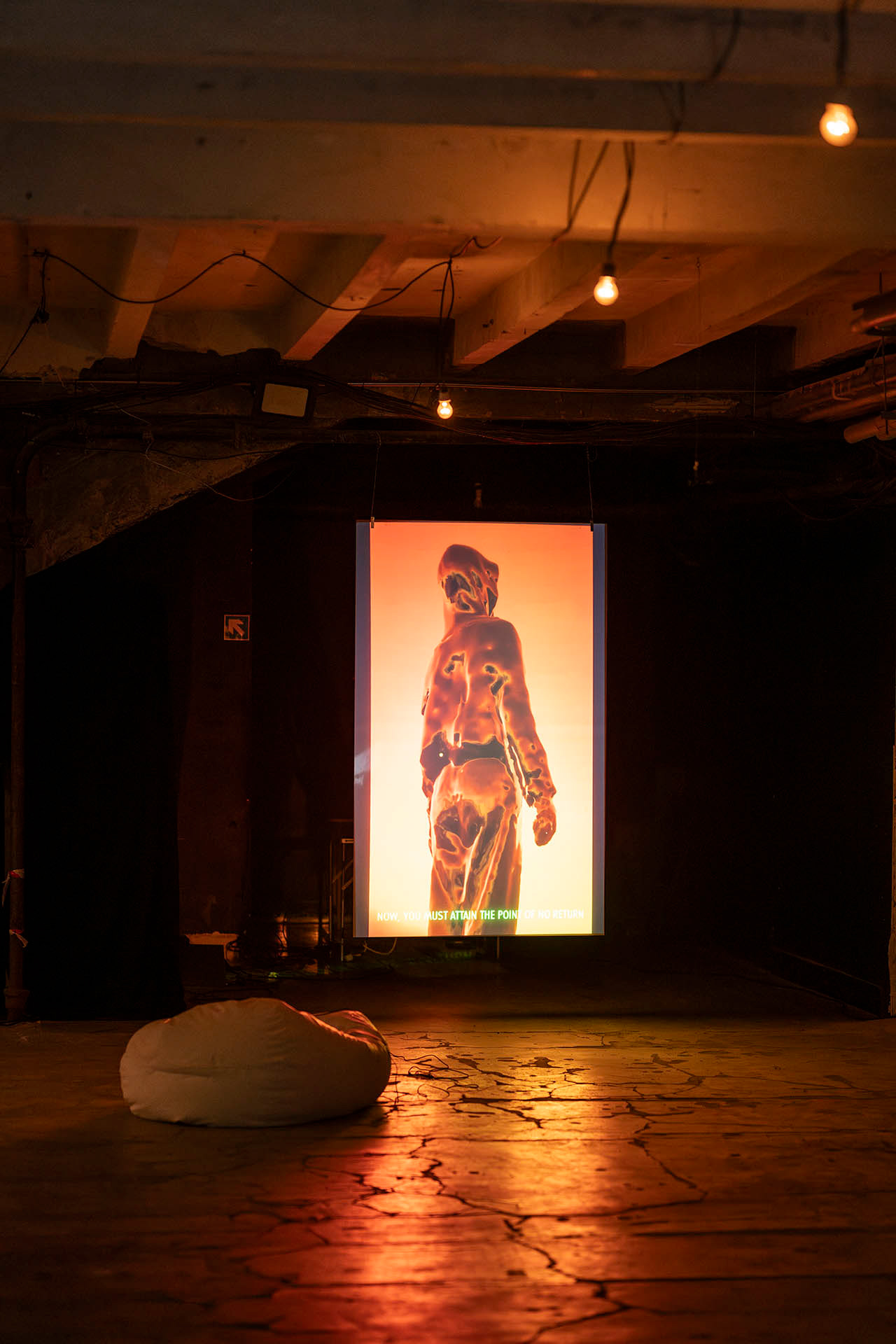 Video was created for one-evening event titled nowlessness, act iii: hot in here (2021) that took place in fallout shelter under Kunsthalle Bratislava. Event was a part of my project nowlessness and presented a group of artists that question the modernist duality nature/culture from multiple perspectives (such as new materialism, queer theory, speculative design etc.). The project by its concept and the character of the works arrangements created a temporary contemplative situation, where the dualities between analog/digital, biological/artificial, cultural/natural, male/female are being erased. Conceptually, the video is based on the notion of "singularity", which comes from the accelerationist theory. "Singularity" is a radical theory according to which "Homo universus", a new evolutionary stage of man, will appear in the near future. We will soon reach a catastrophic point at which the capacity of the global digital network will exceed the capacity of all the grey matter present on the planet (the so-called Omega point).