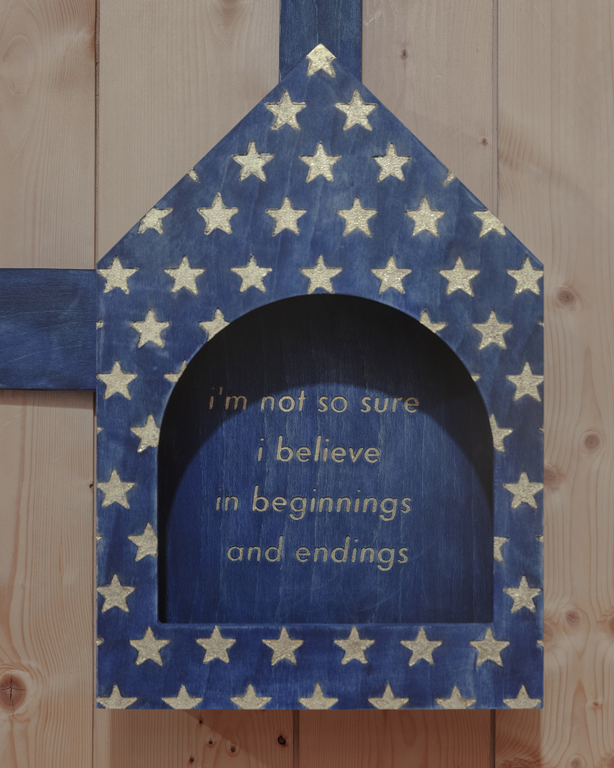 During summer of 2024 I took part in a symposium organised by Fundacja Jaw Dikh in Rzepiska, Poland. These objects are directly inspired by the chapels found in the area, that are being built by the residents in front of their homes and serve as spiritual protection. I became increasingly interested in this subject, since while a house itself serves as a shelter for our physical safety, i assume these chapels are supposed to deliver spiritual one - bring a peace of mind, a warmness and calmness to the house. I actually very appreciate the idea of building a talisman to look after you, after all, it is very typical for people accross various cultures to put meaning into objects. I was working with physical form of these chapels, which when stripped down to their bare shape suddenly become very obscure and inherently queer objects, leaving the viewer questioning their purpose. They might be reminiscent of a dollhouse, a birdfeeder, an actual cabinet etc. While the arrows keep showing the directions, without the information provided it’s impossible to know where the roads are leading. The viewer is left with the idea of having to choose a path, while not knowing what is at the end. These objects, robbed of their original religious meaning, might still be able to bring a sense of fellowship and hope.